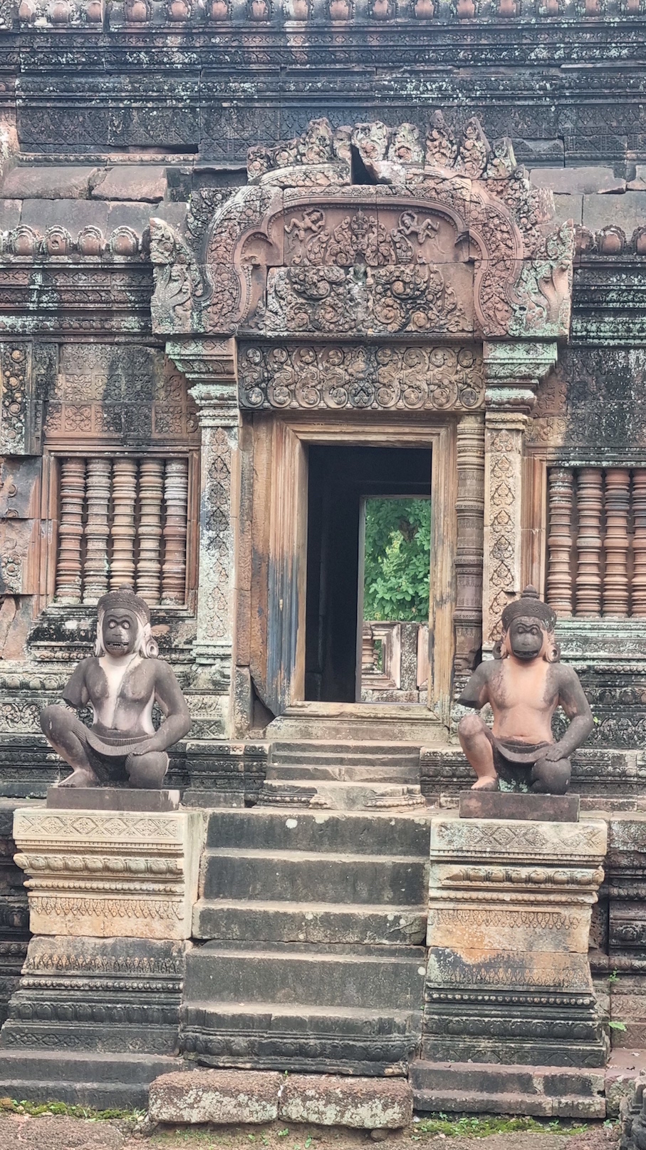 Finally, the main reason why we came to Banteay Srei. It was these guardians I saw in the photo of the travel book. At first I though they were monkeys. Like an army of monkey gods protecting the temple. But after visiting Angkor National Museum the next day, I finally found out that these were guardians with lion heads..... And again, the similarity to Egypt is striking to me. Have anyone done a comparison and analyst of the Egypt civilisation vs the Khmer Empire? I bet someone did, I just haven't found it yet.... Or if you're a historian reading this, can you please do a study on it or point me to the appropriate papers?